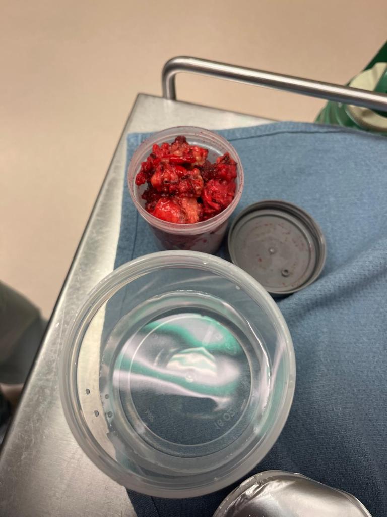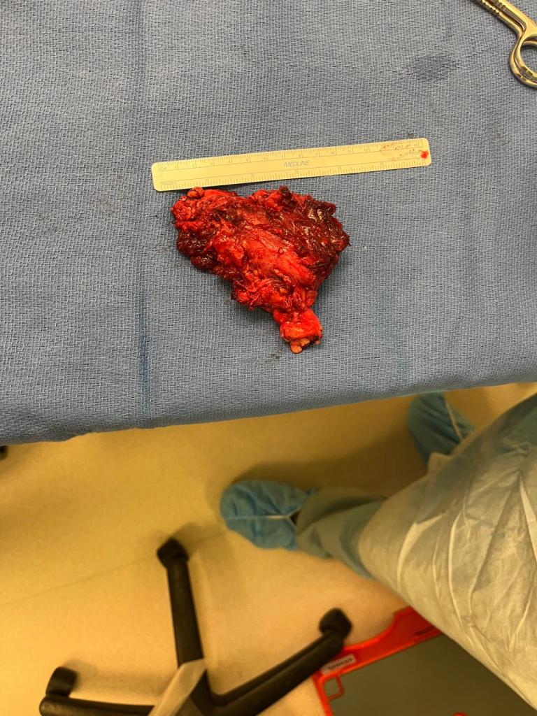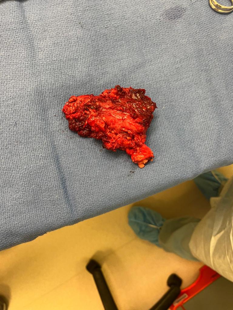 10/27 7:00am- Mom says “Got these pics from one of the young surgeons. At the bottom you can see the jugular vein theat the tumor had already taken over.” I have just learned a person can live with a portion of jugular missing, now isn’t that fun.