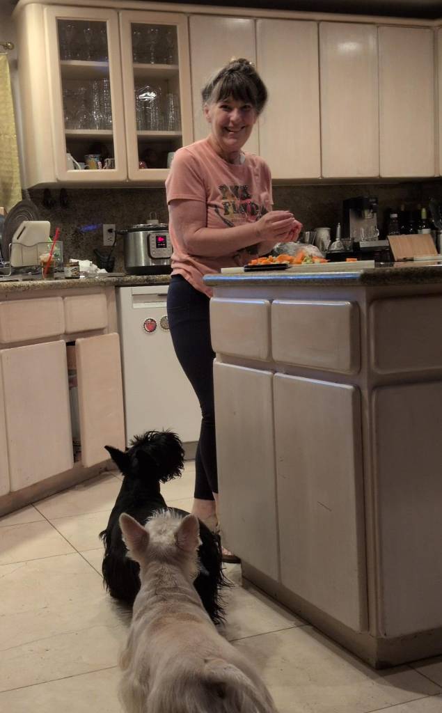 10/28 6:00pm-making beef stew with loyal followers at her heel
